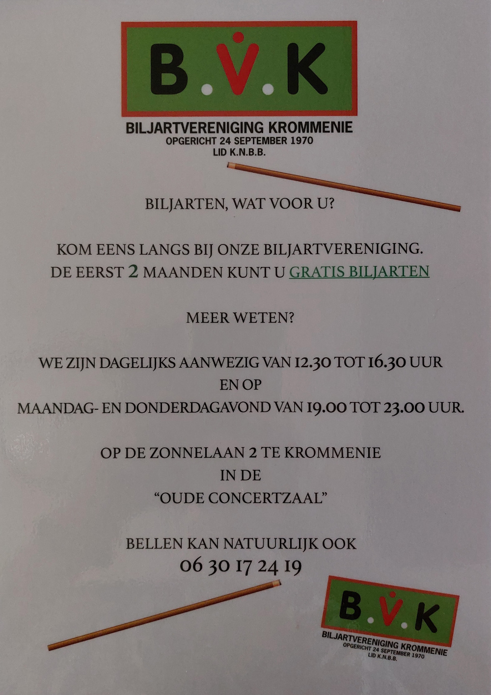 Het vrij spelen (zonder extra kosten) is verlengd totdat er een andere activiteit komt op de woensdagmiddag. Veel biljart plezier.